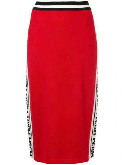 Red wool blend fitted skirt with logo-ed side from MSGM.