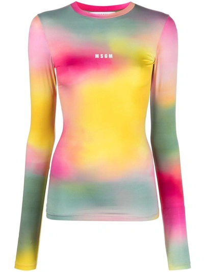 Logo-print tie-dye top from MSGM featuring multicolour, stretch-design, all-over graphic print, logo print to the front, crew neck, long sleeves and straight hem.SizeAndFit: Size IT*Import tax/duty will be calculated at checkout (If applicable)