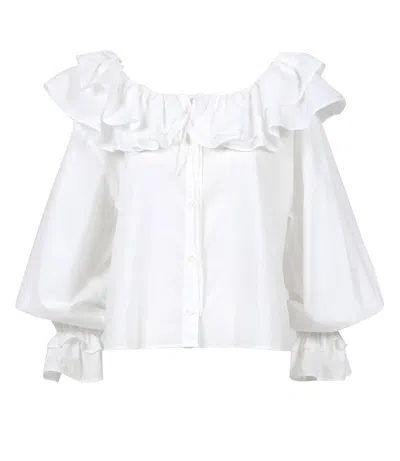 - Cotton - Wide round neckline fully edged with two soft ruffles - Exposed front button closure - Puffed long sleeves with double ruffle cuffs - Straight hem - Regular fit