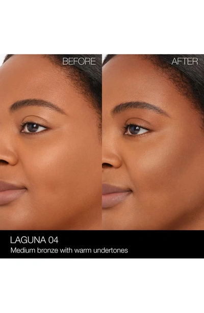 What it is: An iconic powder bronzer in nine talc-free shades to create instant warmth that lasts all day. Who it's for: Ideal for all skin types and tones.What it does: Bring on the bronze with this iconic bronzing powder formula in nine talc-free shades. Silky pigments instantly deliver long-lasting warmth with all-day comfort. Finely milled powders seamlessly build and blend to create a lit-from-within glow, while translucent microspheres smooth skin texture for a perfected complexion. The powder can be used to contour, define or enhance the look of tanned skin. The nine bronze shades enhance the look of tanned skin for all skin tones. How to use: For fair and light complexions, select a Laguna Bronzing Powder with a neutral or warm undertone. For deeper complexions, select one with red or neutral undertones to enhance depth and dimension. To create soft, allover warmth, swirl Laguna Bronzing Powder onto the apples of cheeks, blending outward and upward along the cheekbones. Sweep a small amount across the forehead and bridge of the nose for an additional sunkissed look. For a contoured effect, apply Laguna Bronzing Powder one to two shades deeper than the natural skin tone in the hollows of the cheekbones and jawline. Use remaining pigment to blend onto the neck and décolletage to prevent lines of demarcation. Apply in a circular motion, continuously buffing and blending, to avoid harsh lines.