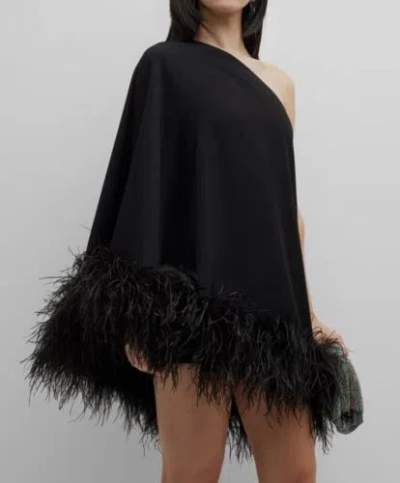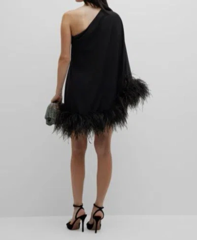 Pre-owned $836 Arrivals Women's Black Feather One-shoulder Marlene Mini Dress Size 38