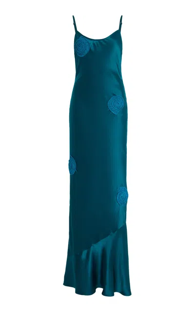 NIA THOMAS Exclusive Aurelia Hand-crocheted Silk-charmeuse Maxi Slip Dress In Blue