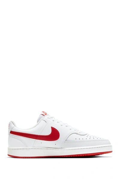 FRESH OFF THE COURT. So you're in love with the classic look of '80s basketball, but you've got a thing for the fast-paced culture of today's game. Meet the new Nike Court Vision Low. Its crisp upper and stitched overlays are inspired by the hook shot of old-school basketball while its super plush, low-cut collar adds a sleek look that's comfortable day in and day out. Retro Hoops Inspiration Using a combination of real and synthetic leather, the construction uses materials that echo mid-1980s basketball shoes. Sleek and Simple Details The thick laces, original pivot circles on the sole and retro Swoosh design keep it sleek and simple so you can wear them anywhere. Tried and True The vulcanized construction fuses the outsole to midsole for a streamlined look that's durable and comfortable. Product Details Leather and synthetic leather in the upper Stitched-down Swoosh design Perforations on toe and sides "NIKE" debossed on heel Style: CD5463; Color: White/University Red; Gender: Male; Age Group: Adult