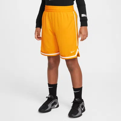 From layup drills at home to pickup games in the park with your friends, you can do it all in these roomy basketball shorts. Powered by comfortable knit fabric that pulls sweat away from your skin, they help you stay cool and focused through every dribble, drive and dagger shot. Plus, a zippered pocket helps keep small essentials secure as you run down the court to make your next slam dunk. Benefits:Nike Dri-FIT technology moves sweat away from your skin for quicker evaporation, helping you stay dry and comfortable. Lightweight knit fabric is soft and flexible, helping you comfortably move in any direction. Elastic waistband with internal drawcord helps you find your perfect fit. Zippered utility pocket provides secure storage for snacks, keys or other essential items. Product Details:Body/Pocket bags: 100% polyester. Side pockets. Striped hem tape. Machine wash. Imported. Style: FJ6802; Color: Orange Peel/White; Size: XS; Gender: Male; Age Group: Kids | Nike Dri-FIT DNA Big Kids' (Boys') Basketball Shorts in Orange, Size: XS | FJ6802-822