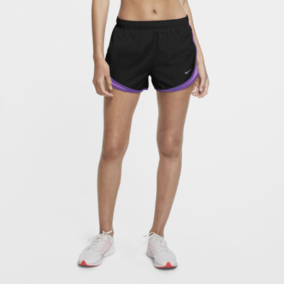 SWEAT-WICKING COMFORT. The Nike Tempo Shorts deliver a classic fit with sweat-wicking technology to help keep you dry and comfortable. Mesh on the sides adds ventilation while the shortened length reduces distractions. The elastic waistband with drawcord lets you easily adjust your fit. Benefits Nike Dri-FIT technology helps keep you dry, comfortable and focused. A curved hem lets you move freely. A liner adds coverage. Mesh on the sides adds ventilation. An internal audio pocket lets you stash your essentials. Elastic waistband with drawcord has a snug fit. Product Details Standard fit Fabric (heather): Body: 100% polyester. Lining/gusset lining: 100% recycled polyester. Fabric (solid): Body/lining/gusset lining: 100% recycled polyester. Side panels: 100% polyester. Machine wash Imported MADE WITH SUSTAINABLE MATERIALSThis product is made with at least 50% recycled polyester fabric. The material comes from plastic bottles that Nike has diverted from landfills since 2010—bringing Nike's total to more than 7 billion. Style: 831558;Color: Black/Black; Size: XL; Gender: Female