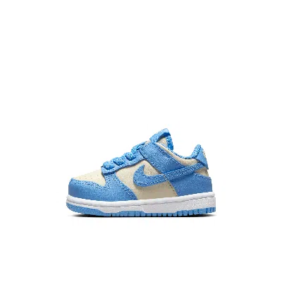Start your little one's sneaker collection off with an icon. Designed for basketball but adopted by skaters, the Nike Dunk Low helped define sneakerhead culture. With plush ankle padding and durable rubber traction, this '80s icon is an easy win for playtime and beyond. Made to Last:Real and synthetic leathers are durable and bring a classic feel. Heritage Look:Collar and tongue pair with perforations on the toe area to give these sneakers an iconic look rooted in the original Dunk. All-Day Traction:Full-length rubber outsole provides durable traction and features a pattern similar to the original. Product Details:Classic laces. Cupsole construction. Style: FB9107; Color: Blue Beyond/Beach/White/Blue Beyond; Size: 3C; Gender: Male; Age Group: Toddler | Nike Dunk Low Baby/Toddler Shoes in Blue, Size: 3C | FB9107-400