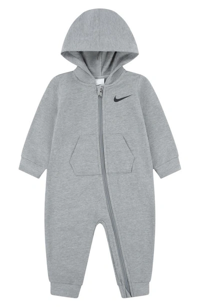 NIKE Babies' Hooded French Terry Romper In Dark Grey Heather