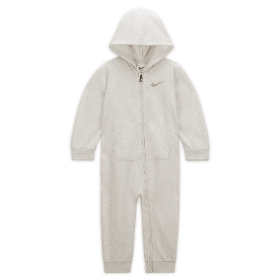 NIKE Babies' Hooded French Terry Romper In Pale Ivory Heather