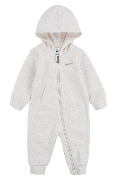 NIKE Babies' Hooded French Terry Romper In Pale Ivory Heather