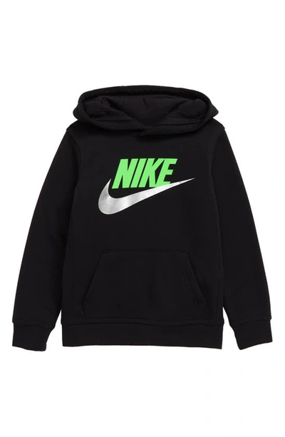 NIKE Kids' Club Logo Hoodie In Black/ Green Strike