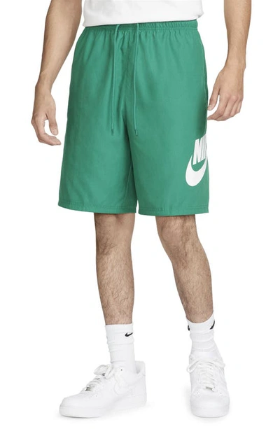 Size & Fit Standard fit is athletic and relaxed through the seat and thighs Designed to hit above the knee Product Features Soft and durable woven twill fabric provides easygoing comfort Printed Nike Futura logo at the thigh delivers heritage style Elastic waistband with an outer drawcord to personalize the fit Slip-in side pockets equip space for your phone, wallet, keys, etc. 100% polyester Machine wash The Nike Club Unlined Woven Shorts are imported. Throw on the Men's Nike Club Unlined Woven Shorts whenever you're up for some well-deserved fun in the sun. Smooth woven twill fabric and an elasticized waistband with an outer drawcord team up for a pair you can rock while doing cannonballs off the high dive or enjoying some downtime in the warm weather. Plus, unmistakable Nike graphics ensure you maintain your stylish and sporty energy through any summertime activity.