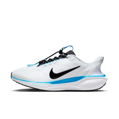 Step in easy and experience next-level energy return. Responsive cushioning in the Pegasus provides an energized ride for everyday road running. Experience lighter-weight energy return with dual Air Zoom units and a ReactX foam midsole. Plus, improved engineered mesh on the upper decreases weight and increases breathability. Adjustable Toggle:Our engineered toggle gives you an adjustable fit. Breathable Upper:The upper is made of upgraded breathable engineered mesh. Responsive Ride:The ReactX foam midsole surrounds forefoot and heel Air Zoom units for an energized ride. What's New?: ReactX foam midsole. Lighter, more breathable engineered mesh upper Product Details:Weight:Approx. 312g/11.0oz (Men's US 10). Heel-to-toe drop:10mm. Reflective details. Not intended for use as Personal Protective Equipment (PPE). Style: FQ7837; Color: White/Black/Blue Hero/Metallic Silver; Size: 6; Gender: Male; Age Group: Adult | Nike Pegasus EasyOn Men's Road Running Shoes in White, Size: 6 | FQ7837-120