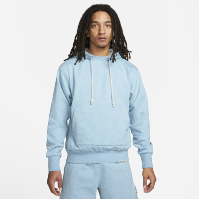 This sweat-wicking combines a classic look with the feel of modern performance for beyond the basketball court. It's soft, yet heavyweight, with coverage that's ready to go right out of your gym bag. Benefits: Nike Dri-FIT technology moves sweat away from your skin for quicker evaporation, helping you stay dry and comfortable. Heavyweight French terry fabric has a soft, comfortable feel. Zippered pocket at the right side is large enough to store most phones. Product Details: Ribbed neckband, side panel, cuffs and hem. Front pocket. Standard Issue woven label. Embroidered Swoosh graphic. Body: 61% cotton/39% polyester. Rib: 97% cotton/3% spandex. Hood lining: 100% cotton. Machine wash. Imported. Style: DQ5818; Color: Worn Blue/Heather/Pale Ivory; Size: 3XL; Gender: Male; Age Group: Adult | Nike Standard Issue Men's Dri-FIT Pullover Basketball Hoodie in Blue, Size: 3XL | DQ5818-494