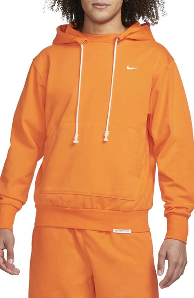 This sweat-wicking combines a classic look with the feel of modern performance for beyond the basketball court. It's soft, yet heavyweight, with coverage that's ready to go right out of your gym bag. Benefits: Nike Dri-FIT technology moves sweat away from your skin for quicker evaporation, helping you stay dry and comfortable. Heavyweight French terry fabric has a soft, comfortable feel. Zippered pocket at the right side is large enough to store most phones. Product Details: Ribbed neckband, side panel, cuffs and hem. Front pocket. Standard Issue woven label. Embroidered Swoosh graphic. Body: 61% cotton/39% polyester. Rib: 97% cotton/3% spandex. Hood lining: 100% cotton. Machine wash. Imported. Style: DQ5818; Color: Safety Orange/Pale Ivory; Size: 4XL Tall; Gender: Male; Age Group: Adult | Nike Standard Issue Men's Dri-FIT Pullover Basketball Hoodie in Orange, Size: 4XL Tall | DQ5818-819
