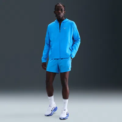 BUILT FOR SPEED, TAILORED FOR MOVEMENT. Designed for running, the Nike Stride Shorts have a lightweight feel that creates the feeling of unrestricted movement. They're smooth to the touch, with extra breathability at the upper back. Need to take a phone along? We've got a pocket at the back geared just for your device. Less Sweat, Better Cool:Nike Dri-FIT technology moves sweat away from your skin for quicker evaporation, helping you stay dry and comfortable. We added breathable fabric at the upper back to help keep you cool. An ergonomic brief liner feels soft and supportive. A Stride to Strive For:The Stride shorts are built to move. We made them with a shallower rise and limited give so you can run fast and free. The narrow waistband has a drawcord that can be worn internally or externally for adjustable support. Secure Storage:Side pockets help keep items like a key or card close. A zippered back pocket is large enough to hold a phone. It has an internal moisture barrier to help keep your gear dry. More Benefits: Designed for Running. Length: 7\". Liner: Brief. Fabric: Lightweight and breathable woven. Storage: Side pockets and zippered back pocket. Waistband: Narrow with drawcord Product Details:Standard fit for a relaxed, easy feel. Body:100% polyester. Panels:94% polyester/6% spandex. Brief:89% polyester/11% spandex. Machine wash. Imported. Not intended for use as Personal Protective Equipment (PPE). Style: DM4761; Color: Blue Hero/Black; Size: XL; Gender: Male; Age Group: Adult | Nike Stride Men's Dri-FIT 7" Brief-Lined Running Shorts in Blue, Size: XL | DM4761-446