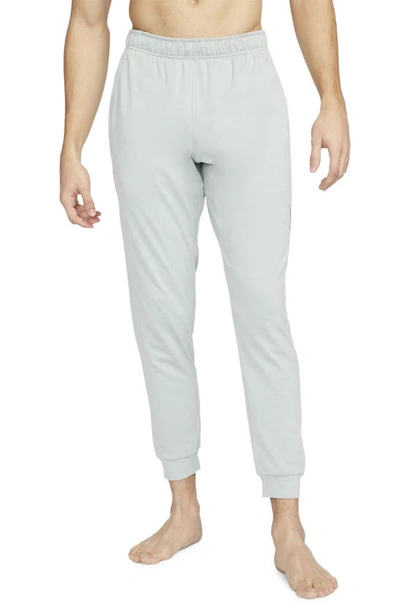 MINDFUL COVERAGE ON OR OFF THE MAT. The Nike Yoga Dri-FIT Pants are a soft, light layer that keeps you comfortably covered during practice and beyond. They're made from at least 75% recycled polyester fibers with sweat-wicking power that helps you stay dry from your first stretch to your last pose. Dri-FIT Comfort: Soft, light fabric with Dri-FIT technology moves sweat from your skin to help you stay dry and comfortable. Minimal Distractions: The tapered design cuts down on excess material at your lower leg so you can focus on your posture. The elastic waist with drawcord helps keep the pants in place as you move. Product Details: Standard fit for a relaxed, easy feel. Pockets. 92% polyester/8% spandex. Machine wash. Imported. Style: CZ2208; Color: Light Silver/Mica Green; Size: 3XL; Gender: Male; Age Group: Adult | Nike Yoga Dri-FIT Men's Pants in Grey, Size: 3XL | CZ2208-034