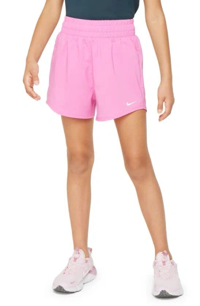 NIKE One Big Kids' (girls') Dri-fit High-waisted Woven Training Shorts In Playful Pink/white