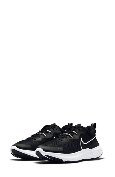 SOFT COMFORT FOR EVERY MILE. When running becomes a daily habit, stability and comfort are crucial. The Nike React Miler 2 delivers, bringing back the soft cushioning and intuitive design of its predecessor. Its redesigned upper helps cut down on the bulk, offering support and a secure feel on long and short runs. Resistant and Light The upper uses mesh placed in key zones for lightweight and breathable durability. That Secure Feel A band at the midfoot tightens when you lace up for a secure fit. A stiff piece around the base of the heel gives you extra support. Plush Miles Nike React technology is a responsive foam that creates a smooth ride. Run the Road A full rubber sole means durability and traction for high-mileage training. High-abrasion rubber is placed in areas with the most wear. Product Details Weight (Women's size 8): 9.06oz (257g) Offset: 9.3mm (Forefoot: 21.3mm, Heel: 30.6mm) Not intended for use as Personal Protective Equipment (PPE) Style: CW7136; Color: Black/Smoke Grey/White; Gender: Female; Age Group: Adult