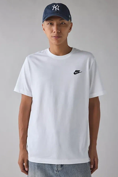 Classic Club Tee from Nike, cut from premium cotton for a comfortable wear. Cotton is cut in a standard fit with short sleeves, ribbed crew neck and embroidered logo at the chest. Essential tee to pair with shorts for workouts or casual everyday wear. Features Nike Sportswear Club tee Logo icon t-shirt from Nike Ribbed crew neck Premium cotton jersey Logo icon at the chest Short sleeve Regular fit Content + Care 100% Cotton Machine wash Imported Size + Fit Model in White is 6'0" and wearing size Large Measurements taken from size Large Chest: 20" Length: 28" Nike Sportswear Club Tee in White, Men's at Urban Outfitters