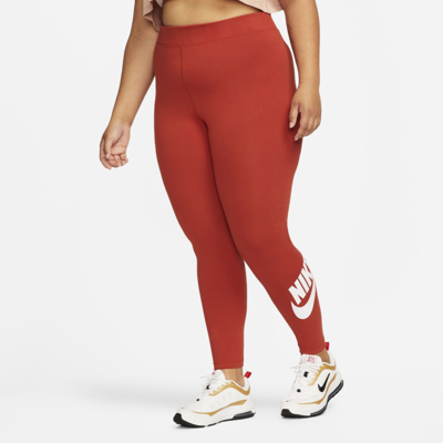 AN ABSOLUTE ESSENTIAL. The perfect complement to your favorite tops and tees, the Nike Sportswear Leggings offer a high-rise design and a comfortable stretch waistband. Stretchy, sweat-wicking fabric and a Nike print make these an easy choice for everyday wear. Sweat-Wicking Comfort: This soft and stretchy fabric helps wick sweat away from your body to help keep you feeling cool and dry throughout the day. High-Rise Design: A contoured high-rise design sits on your hips for body-conforming comfort. Stretch Waistband: A stretch waistband provides a snug, comfortable feel. More Benefits: Printed graphic at the calf helps show love for the brand. Product Details: Tight fit for a body-hugging feel. 61% cotton/33% polyester/6% spandex. Machine wash. Imported. Style: DC6950; Color: Cinnabar/White; Size: 2X; Gender: Female; Age Group: Adult | Nike Sportswear Essential Women's High-Waisted Leggings (Plus Size) in Red, Size: 2X | DC6950-623
