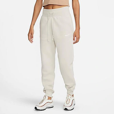 Rise up and transform your fleece wardrobe with strong cozy vibes. These Phoenix Fleece sweats have the easy, familiar feel of your favorites with the extra support and style to set your look apart. Taller cuffs and a slim, tailored leg help your sneakers shine while the taller waistband and exaggerated drawcord ensure your look is anything but basic. Benefits: Smooth on the outside and cozy on the inside, brushed fleece is our go-to sweatshirt material for colder temperatures. Elongated ribbing at the waist and cuffs provides extra comfort and structure. Pockets provide quick storage for keys, phone and cold hands. Product Details: 80% cotton/20% polyester. High-rise waistband. Embroidered Swoosh logo. Side pockets. Braided drawcord. Machine wash. Imported. Style: DQ5688; Color: Light Orewood Brown/Sail; Size: XL Short; Gender: Female; Age Group: Adult | Nike Sportswear Phoenix Fleece Women's High-Waisted Jogger Pants in Brown, Size: XL Short | DQ5688-104
