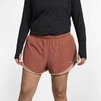 CLASSIC PERFORMANCE The Nike Tempo Women's 3" Running Shorts are an iconic silhouette and all-time favorite. Inspired by classic track shorts, but ideal for your daily run or marathon, this essential is made with lightweight, sweat-wicking fabric. Stay Dry The lightweight material features Dri-FIT Technology that wicks sweat away from your skin to the fabric's surface where it quickly evaporates. Move Freely The curved hem follows the shape of your thighs so you can stretch, squat and stride freely. A drawcord in the elastic waist helps keep the shorts in place. Stay CoolMesh side panels enhance breathability for cool comfort. Their slightly loose fit in the leg creates a breezy feel. More Details 3" inseam Zippered back pocket with vapor barrier helps keep items dry Plus size 1X-3X Fabric: Body: Dri-FIT 100% polyester. Lining: Dri-FIT 100% recycled polyester. Machine wash Imported Style: 847761;Color: Rose Gold/Rose Gold/Wolf Grey; Size: 2X; Gender: Female