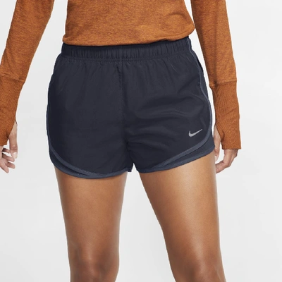 SWEAT-WICKING COMFORT. The Nike Tempo Shorts deliver a classic fit with sweat-wicking technology to help keep you dry and comfortable. Mesh on the sides adds ventilation while the shortened length reduces distractions. The elastic waistband with drawcord lets you easily adjust your fit. Benefits Nike Dri-FIT technology helps keep you dry, comfortable and focused. A curved hem lets you move freely. A liner adds coverage. Mesh on the sides adds ventilation. An internal audio pocket lets you stash your essentials. Elastic waistband with drawcord has a snug fit. Product Details Standard fit Fabric (heather): Body: 100% polyester. Lining/gusset lining: 100% recycled polyester. Fabric (solid): Body/lining/gusset lining: 100% recycled polyester. Side panels: 100% polyester. Machine wash Imported MADE WITH SUSTAINABLE MATERIALSThis product is made with at least 50% recycled polyester fabric. The material comes from plastic bottles that Nike has diverted from landfills since 2010—bringing Nike's total to more than 7 billion. Style: 831558;Color: Obsidian/Obsidian/Thunder Blue/Wolf Grey; Size: XS; Gender: Female