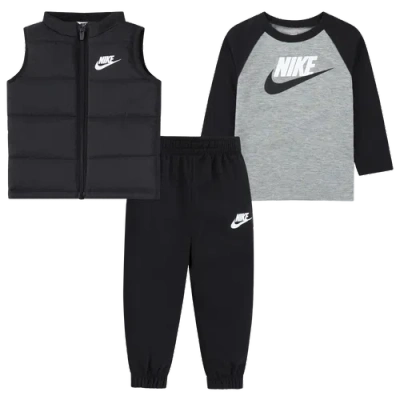 NIKE Kids' Toddler Boys Solid Vest, Long Sleeve Tee And Pants, 3-piece Set In Black