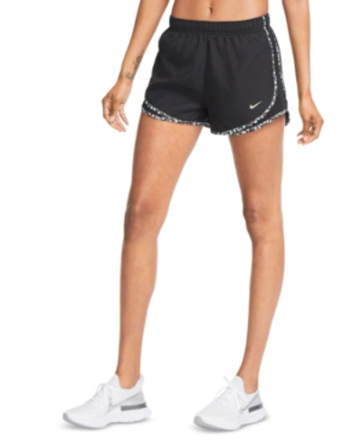 SWEAT-WICKING COMFORT. The Nike Tempo Shorts deliver a classic fit with sweat-wicking technology to help keep you dry and comfortable. Mesh on the sides adds ventilation while the shortened length reduces distractions. The elastic waistband with drawcord lets you easily adjust your fit. This product is made with at least 75% recycled polyester fabric. Benefits Nike Dri-FIT technology helps keep you dry, comfortable and focused. A curved hem lets you move freely. A liner adds coverage. Mesh on the sides adds ventilation. An internal audio pocket lets you stash your essentials. Elastic waistband with drawcord has a snug fit. Product Details Standard fit Fabric (heather): Body: 100% polyester. Lining/gusset lining: 100% recycled polyester. Fabric (solid): Body/lining/gusset lining: 100% recycled polyester. Side panels: 100% polyester. Machine wash Imported MADE WITH SUSTAINABLE MATERIALSThis product is made with at least 50% recycled polyester fabric. The material comes from plastic bottles that Nike has diverted from landfills since 2010—bringing Nike's total to more than 7 billion. Style: 831558;Color: Black/Black/Smoke Grey/Wolf Grey; Size: S; Gender: Female