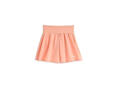Nike Kids Dri-FIT Shorts (Little Kid/Big Kid) - Girl's Shorts : Apricot Agate/White : Made with durable woven fabric and a built-in knit liner, the Nike Dri-FIT Shorts FM Sport help support your every stride no matter what sport you play. Plus, the sweat-wicking Dri-FIT technology helps you stay cool and comfortable. ; Relaxed fit. ; Mid-rise silhouette. ; Pull-on style. ; 100% polyester. ; Machine washable. ; Imported. Measurements: ; Waist Measurement: 212 in ; Outseam: 12 in ; Inseam: 3 1 2 in ; Front Rise: 13 in ; Back Rise: 16 in ; Leg Opening: 26 in ; Product measurements were taken using size SM (7-8 Big Kid). Please note that measurements may vary by size. | Nike Kids Dri-FIT Shorts (Little Kid/Big Kid) Girl's Shorts Apricot Agate/White : XS (6X Big Kid), Polyester