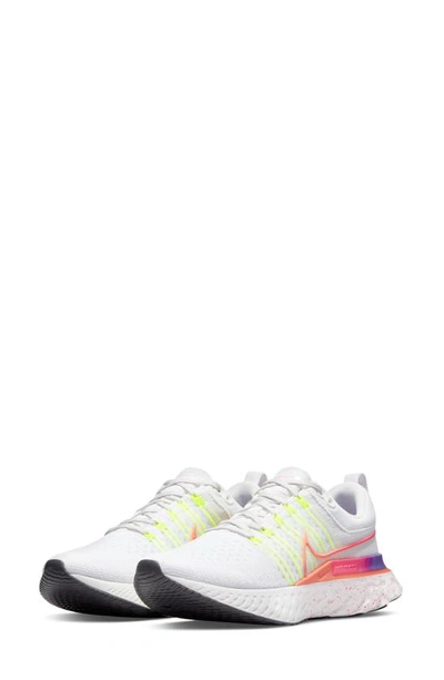 SUMMER ENERGY TO KEEP YOU RUNNING. The Nike React Infinity Run Flyknit 2 keeps you up and running. A refreshed upper uses Flywire technology combined with Flyknit to give you support and breathability where you need it. The high foam heights provide soft responsiveness and long-lasting comfort. It's still one of our most tested shoes, designed to help you feel the potential when your foot hits the pavement. Smooth Ride: Nike React technology is a lightweight, durable foam that delivers a smooth, responsive ride. Shaped like a rocker, the foam provides support for the 3 phases of a runner's stride. It offers flexibility when your foot rises off the ground, a smooth ride when your foot is moving forward and cushioning at ground contact. Ventilated Where Needed: An advanced Flyknit upper provides breathability where you need it most. It's strong and durable, helping to keep your foot secure with every mile. Flywire technology offers extra support and stability through the midfoot. Cushioned Feel, Higher Stacks: Less material between the insole and midsole means you're closer to the foam. This helps create a more responsive experience. The foam itself has a higher height, give you a plush feel. More Benefits: A wide shape provides a more stable ride, helping release energy with every step. Cushioned collar provides soft comfort. More rubber at the outsole helps give you traction and durability. Loop at the heel for easy on and off. Product Details: Not intended for use as Personal Protective Equipment (PPE). Style: DJ5928; Color: Platinum Tint/Hyper Pink/Black/Bright Mango; Size: 6; Gender: Female; Age Group: Adult | Nike React Infinity Run Flyknit 2 Women's Road Running Shoes in Grey, Size: 6 | DJ5928-001