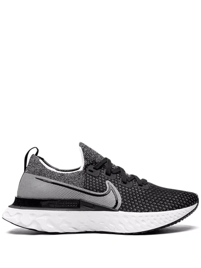 Black React Infinity Run Flyknit sneakers from NIKE featuring signature Swoosh logo detail, contrasting panel detail, round toe, front lace-up fastening, pull-tab at the heel, branded insole and rubber sole. These styles are supplied by a premium sneaker marketplace. Stocking only the most sought-after footwear, they source and curate some of the most hard to find sneakers from around the world..