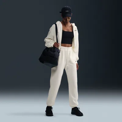 Grounded in style, comfort and versatility, meet our take on luxury loungewear. Whether you're running errands or rewatching your favorite show, these midweight fleece sweats feel extra soft on the inside to help keep you cozy. The oversized fit is intended to sit high on your hips for comfort and a stay-put feel. Benefits:Encased elastic waistband and drawstrings ensure a fit that feels just right. Pockets provide quick storage for keys, phone and cold hands. [] Product Details:80% cotton/20% polyester. Embroidered Swoosh logo on left leg. Machine wash. Imported. Style: FZ5996; Color: Sail/Black; Size: 2XS; Gender: Female; Age Group: Adult | Nike Sportswear Phoenix Fleece Women's High-Waisted Oversized Sweatpants in White, Size: 2XS | FZ5996-133