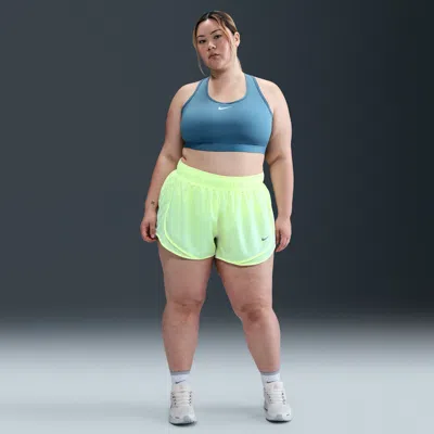 Find your rhythm in these lightweight Tempo shorts. Smooth, sweat-wicking fabric helps you stay dry while mesh panels offer ventilation with every stride. Benefits:Nike Dri-FIT technology moves sweat away from your skin for quicker evaporation, helping you stay dry and comfortable. Soft seams on brief liner help reduce chafing. Product Details:Body/Lining: 100% polyester. Machine wash. Imported. Elastic waistband with internal drawcord. Reflective Swoosh logo on left thigh. Not intended for use as Personal Protective Equipment (PPE). Style: HM6098; Color: Barely Volt/Barely Volt/Barely Volt; Size: 3X; Gender: Female; Age Group: Adult | Nike Tempo Women's Dri-FIT Mid-Rise 3" Brief-Lined Running Shorts (Plus Size) in Yellow, Size: 3X | HM6098-701