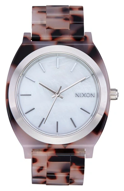 NIXON The Time Teller Acetate Bracelet Watch, 40mm In Pink Tortoise / Pearl
