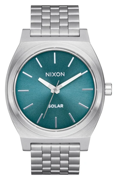 NIXON Time Teller Solar Bracelet Watch, 40mm In Silver / Dusty Blue Sunray