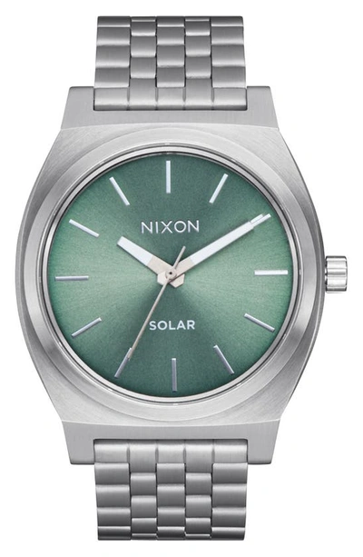 NIXON Time Teller Solar Bracelet Watch, 40mm In Silver / Jade Sunray