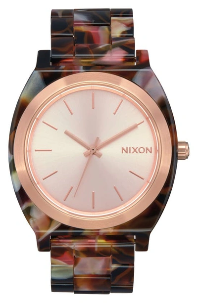 NIXON Women's Time Teller Tortoise Bracelet Watch 40mm In Rose Gold / Pink Tortoise