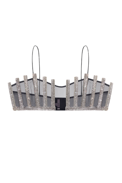 A bralette made from mesh with a figure-hugging bust and internal boning embellished with crystal cords. Lingerie hook-and-eye fastening at the back.Model is wearing a size XS.Model's measurements: height 175 cm.Composition:100% nylon, rhinestones