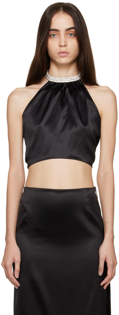 NUÉ Women's Kaia Rhinestone Silk-blend Halter Top In Black