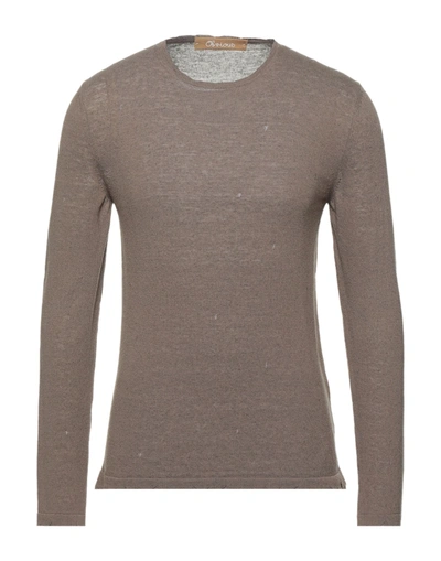 knitted, worn effect, mélange, no appliqués, lightweight knit, round collar, long sleeves, solid color, no pockets , Color: Khaki , Size: XXL