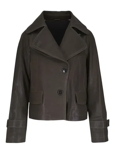 Button Leather Jacket In Brown