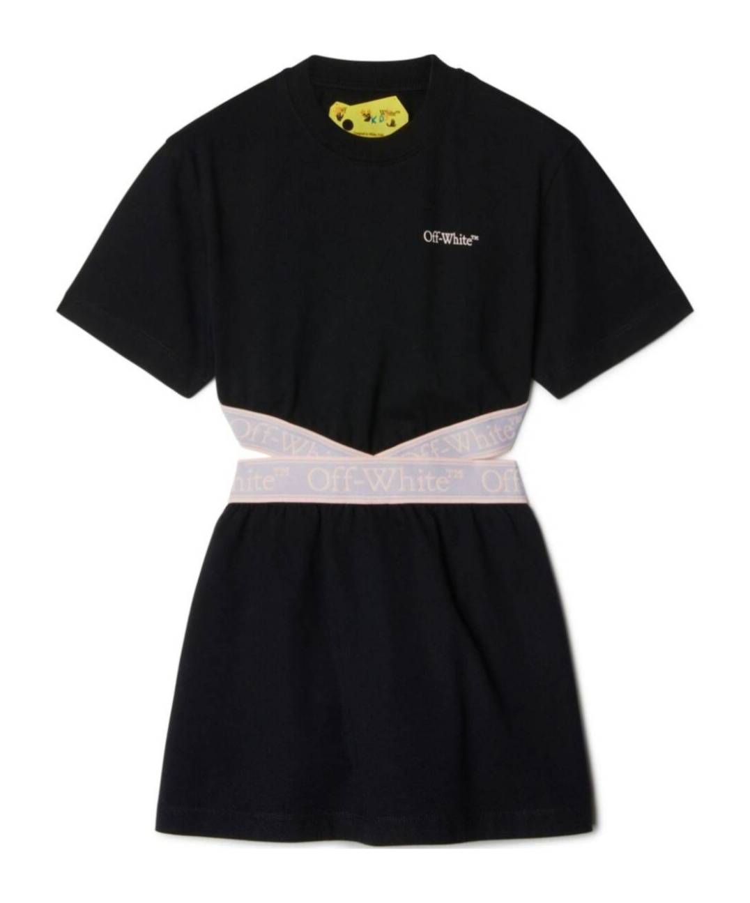 black cotton dress cut-out detailing logo waistband logo print at the chest crew neck short sleeves elasticated waistband A-line skirt curved hem Composition: Cotton, 100%