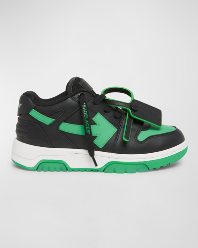 OFF-WHITE Kids' Out Of Office Leather Sneakers In Blk/green