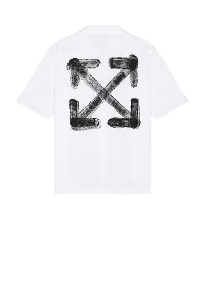 OFF-WHITE Spray Arrow Bowling Shirt in White & Black - White. Size 54 (also in 46, 48, 50, 52). 100% cotton. Made in Italy. Hand wash. Front button closure. Front and back graphic. Midweight poplin fabric. OFFF-MS395. OMGG013S25FAB00A0110.