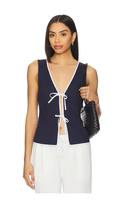 onia Air Linen Tie Front Top in Navy. - size XL (also in L, M, S, XS) onia Air Linen Tie Front Top in Navy. - size XL (also in L, M, S, XS) 55% linen 45% lyocell. Machine wash. Front tie-up closures. Linen fabric with contrast trim. ONIR-WS30. WCT92-01. Carl Cunow and Nathan Romano co-founded onia in 2009, a lifestyle brand inspired by modern voyagers. From swimsuits to loungewear, overnight bags to beach blankets, the range is created with versatility in mind - seamlessly transitioning from the daily routine to faraway retreats, and with the ability to beautifully withstand the rigors of traveling. onia, which means 'sailboat' in Hebrew, represents Carl and Nathan's shared passion for adventure - whether on the sea or off the beaten path - journeys of discovery and fine craftsmanship, rooted in superior design.