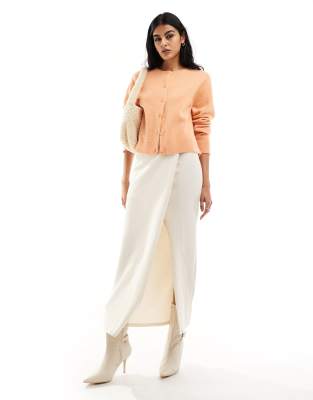 & Merino Wool Blend Cardigan With Button Front In Soft Apricot-orange