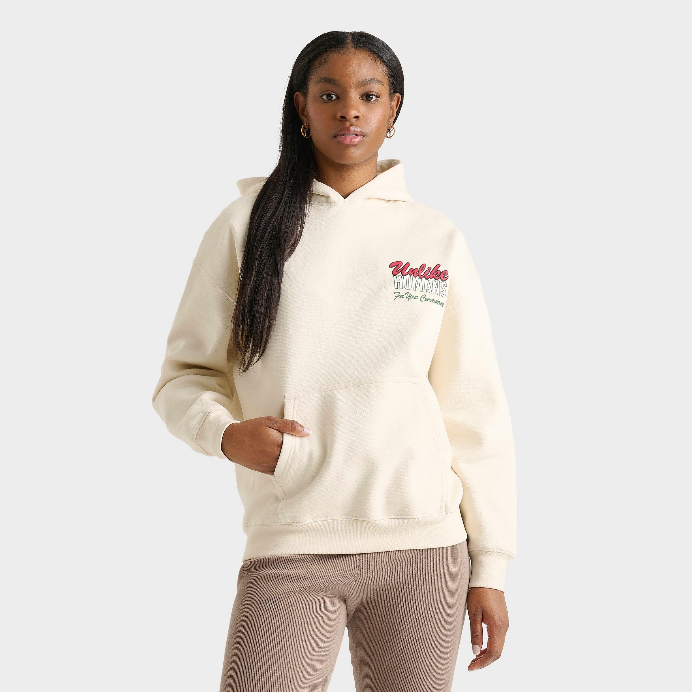 Size & Fit Roomy, relaxed fit Dropped shoulder design Product Features Supersoft, leisure lifestyle hooded sweatshirt with convenient store-inspired cherry graphics at left chest and across back Thick-cut cotton fleece construction with brushed interior 2-panel pullover hoodie design Kangaroo pocket for convenient storage of essential items and colds hands Ribbed hem and cuffs for a stay-put fit that seals in warmth Material percentages may vary. Check the label for actual content. Machine wash The Unlike Humans Cherry Oversized Pullover Hoodie is imported. Add some fruity flavor to your outfit when you style yourself in this Women's Unlike Humans Cherry Oversized Pullover Hoodie. Crafted from a serenely soft cotton-poly blend, this homey fleece pullover sports a generously roomy fit and features convenient store-inspired cherry UH graphics on the front and back for an easy-as-pie streetwear look.