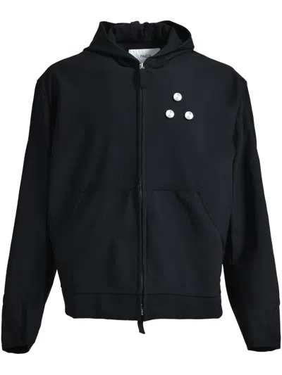 black front zip fastening classic hood long sleeves slip pockets to the sides