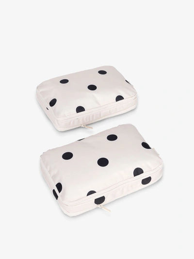 Orchid, Orchid Fields, Green Checkerboard, Daisy, Groovy Blue, Retro Sunset, Orange Grid, Speckle, Palm, Polka Dot, Dragonfruit, Lagoon, Modern Abstract and Pink Grid is Final Sale. Expandable up to 4.5", compresses by 2" Made from durable polyester Double zipper for space-saving compressionmore When you need to pack light, our 2-piece set of Small Compression Packing Cubes helps you pack more. Expandable up to 4.5" and made from ultra-durable material, our smallest luggage organizers are ideal for separating intimates from athletic wear, and will fit enough clothes for a 1-2 day trip. With compression packing cubes for travel, it's never too late to discover a love for organized packing.hideDimensions: Expanded Dimensions: 7" x 10" x 4.5" Compressed Dimensions: 7" x 10" x 2"